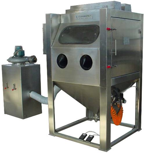 喷砂管因结构特殊特别容易被异物堵住。出现这个问题时,首先关闭手动喷砂机械使其停止工作,接着将喷砂枪取下,再打开手动喷砂机械开始工作,利用空压机产生的高压气体将异物排出。如果无法解决,就要重新考虑是否是喷砂管堵塞问题,或者更换喷砂管。.加砂时因无滤网而使大块异物进入喷砂筒卡在调砂器上:先将推力阀全关,调砂器全开,将压力缸充压,启动喷砂机,以压力将异物挤出;如果不行时,只有将砂筒底端调砂器拆下,将砂泄出,再将调砂器锁回;然后,将砂材经滤网筛过,再重新加入砂筒即可。